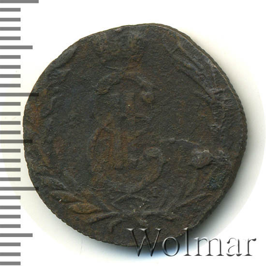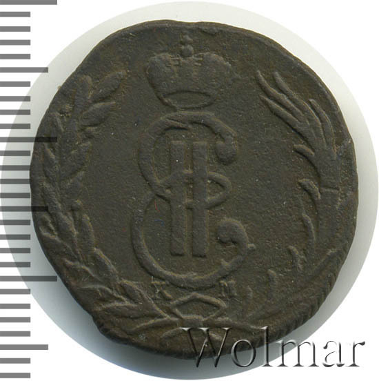 В центре - вензель Екатерины II. Над ним императорская корона. Под вензелем обозначение Сузунского монетного двора - буквы «К М». Вокруг центрального изображения, вдоль канта, изображён венок из лавровой и пальмовой ветвей, которые, в нижней части, перевязаны лентой на узел бантом.