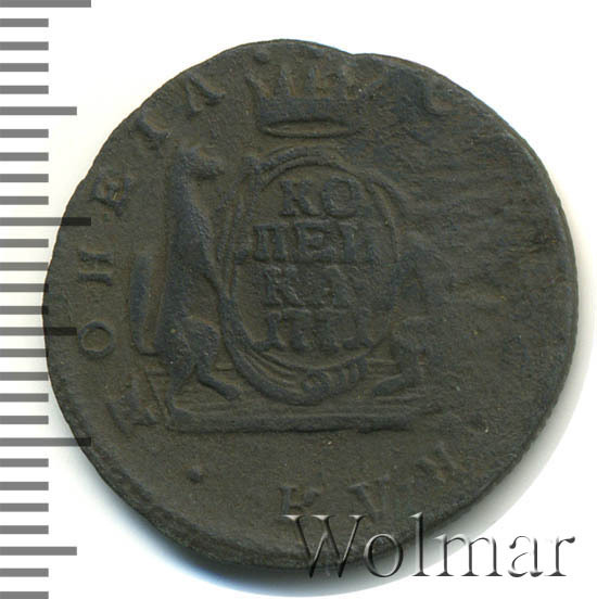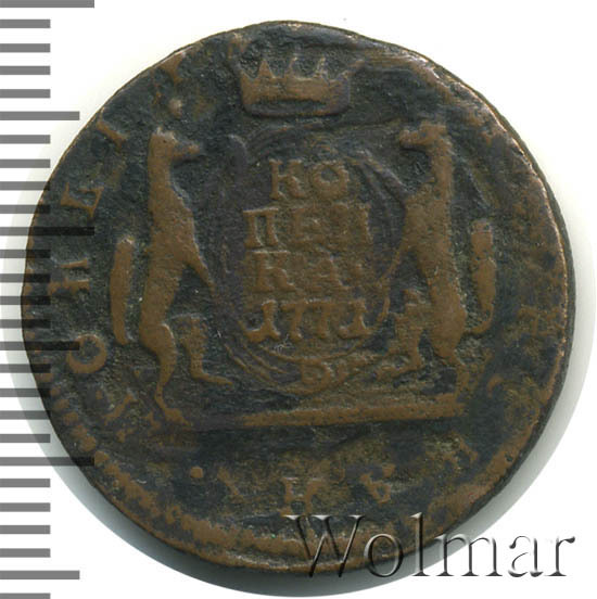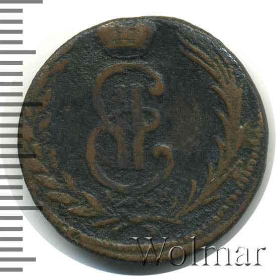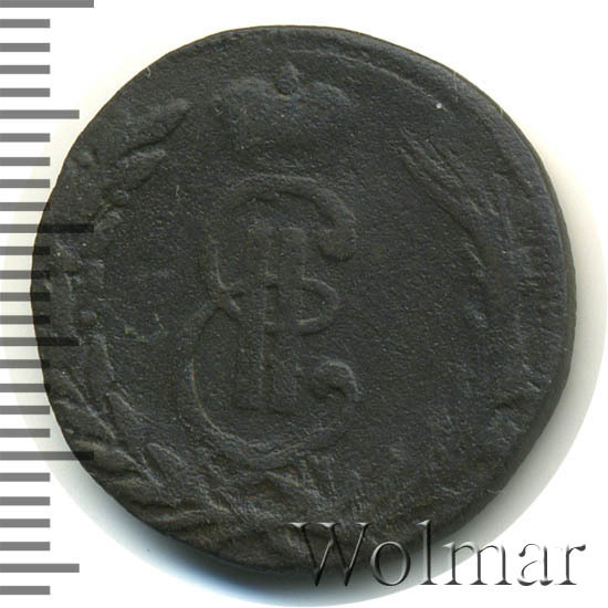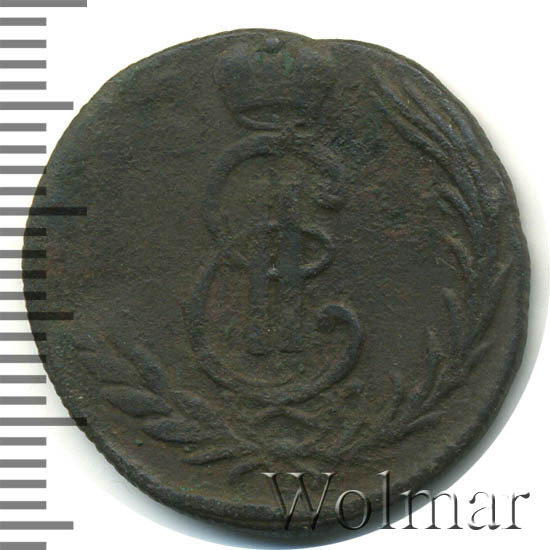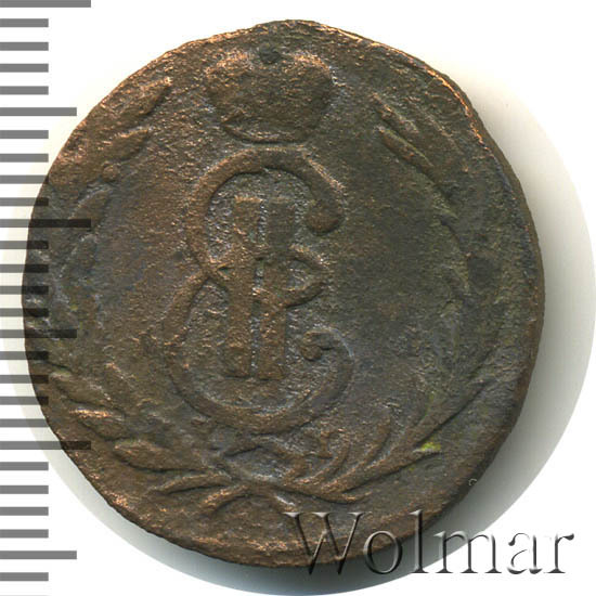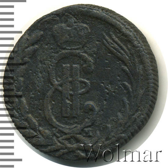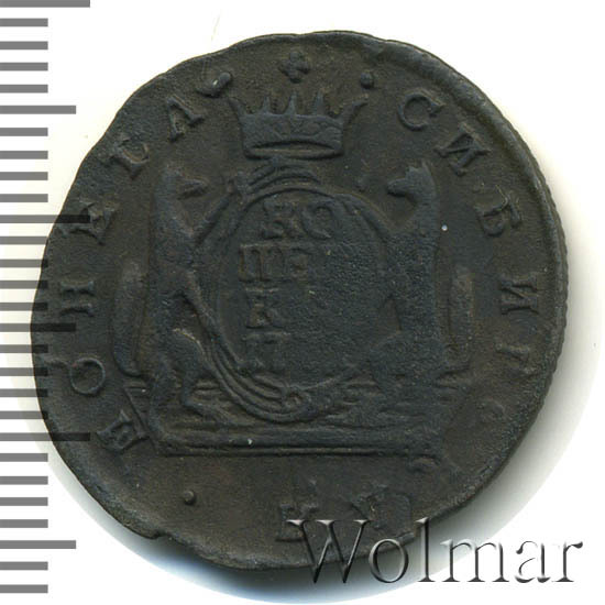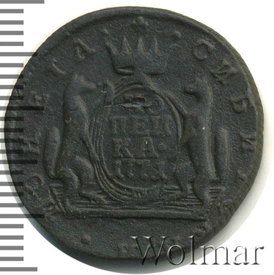 В центре изображен картуш с надписью в три строки: «КО»│«ПЕИ»│«КА•», под надписью дата выпуска - «1771». Картуш, с обеих сторон, поддерживается двумя соболями. Над картушем - царская корона, над ней - четырёхлистная цветочная розетка. По окружности, вдоль канта, надпись: «•СИБИРСКАЯ•МОНЕТА•».