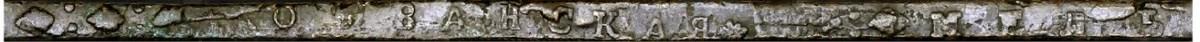В центре - вензель Екатерины II. Над ним императорская корона. Вокруг центрального изображения, вдоль канта, изображён венок из лавровой и пальмовой ветвей, которые, в нижней части, перевязаны лентой на узел бантом.