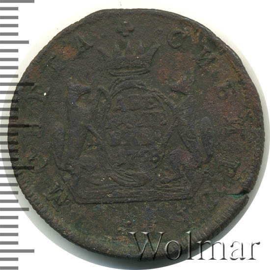 Аверс монеты 2 копейки 1768 года КМ сибирские