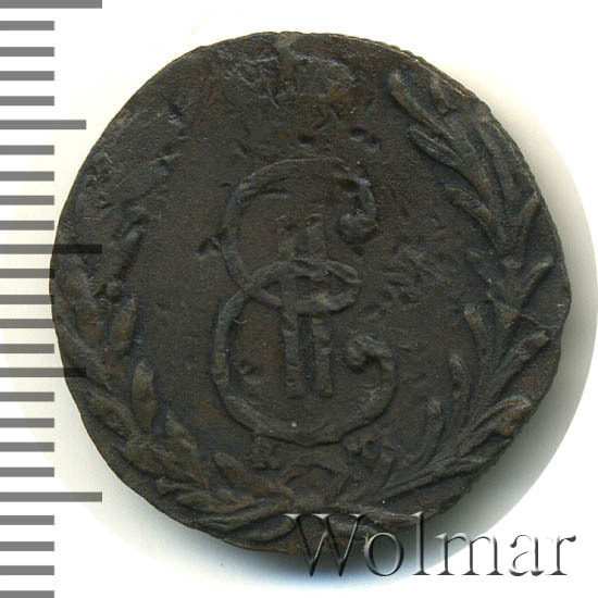 В центре - вензель Екатерины II. Над ним императорская корона. Под вензелем обозначение Сузунского монетного двора - буквы «К М». Вокруг центрального изображения, вдоль канта, изображён венок из лавровой и пальмовой ветвей, которые, в нижней части, перевязаны лентой на узел бантом.