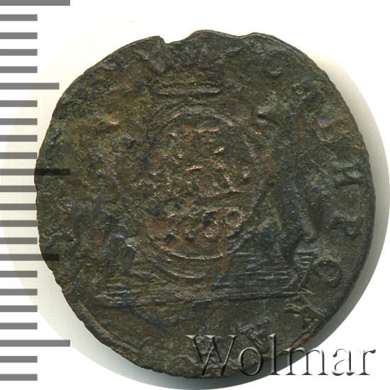 Реверс монеты денга 1769 года КМ сибирская
