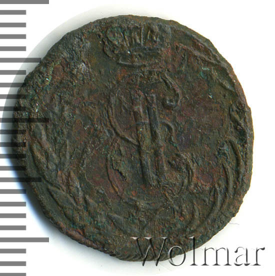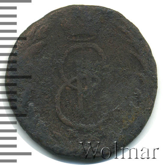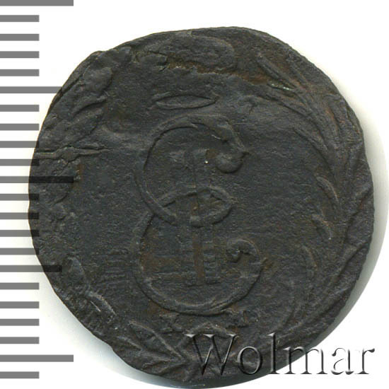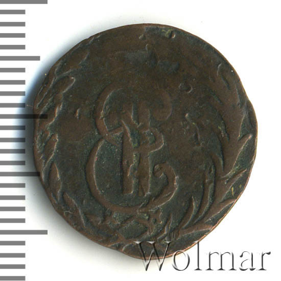 В центре - вензель Екатерины II. Над ним императорская корона. Под вензелем обозначение Сузунского монетного двора - буквы «К М». Вокруг центрального изображения, вдоль канта, изображён венок из лавровой и пальмовой ветвей, которые, в нижней части, перевязаны лентой на узел бантом.