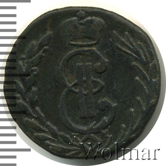 В центре - вензель Екатерины II. Над ним императорская корона. Под вензелем обозначение Сузунского монетного двора - буквы «К М». Вокруг центрального изображения, вдоль канта, изображён венок из лавровой и пальмовой ветвей, которые, в нижней части, перевязаны лентой на узел бантом.