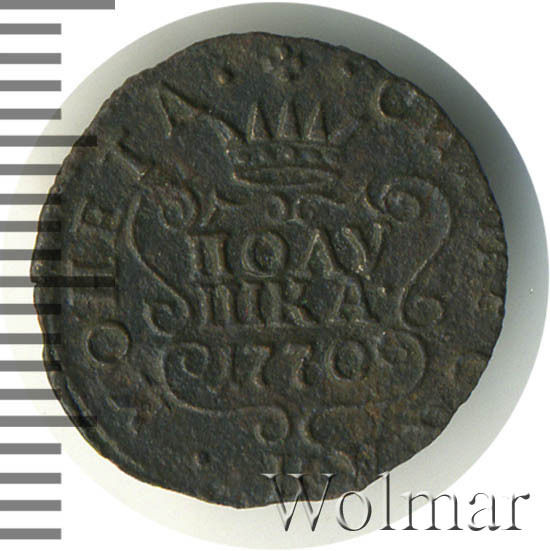 Цена на монету полушка 1770 года КМ сибирская на сегодня, 23 января 2026 года