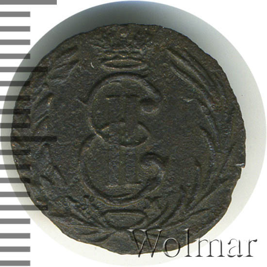 В центре - вензель Екатерины II. Над ним императорская корона. Под вензелем обозначение Сузунского монетного двора - буквы «К М». Вокруг центрального изображения, вдоль канта, изображён венок из лавровой и пальмовой ветвей, которые, в нижней части, перевязаны лентой на узел бантом.