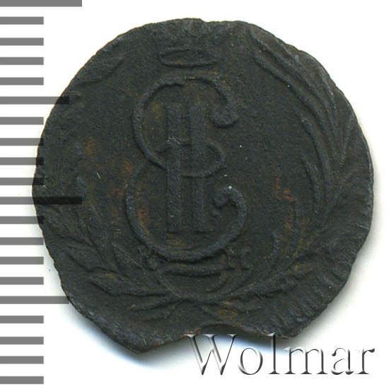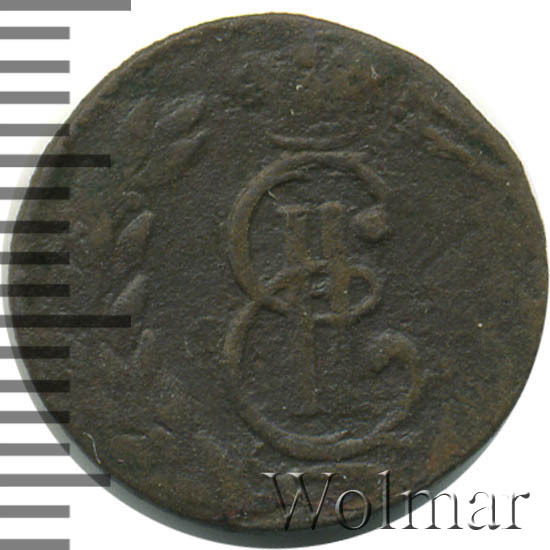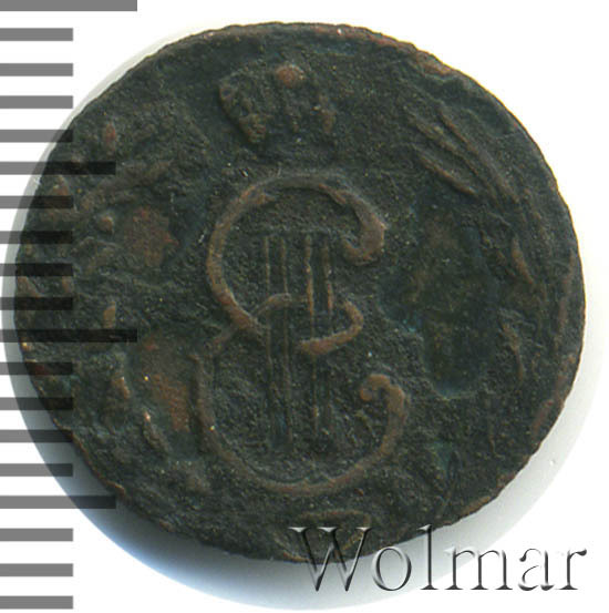 В центре - вензель Екатерины II. Над ним императорская корона. Под вензелем обозначение Сузунского монетного двора - буквы «К М». Вокруг центрального изображения, вдоль канта, изображён венок из лавровой и пальмовой ветвей, которые, в нижней части, перевязаны лентой на узел бантом.