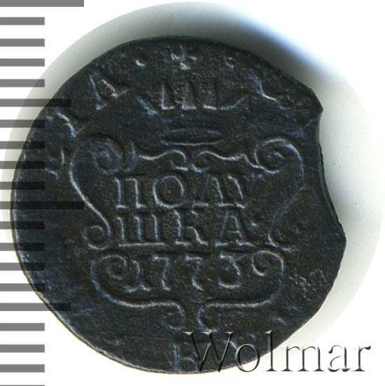Цена на монету полушка 1773 года КМ сибирская на сегодня, 5 февраля 2026 года