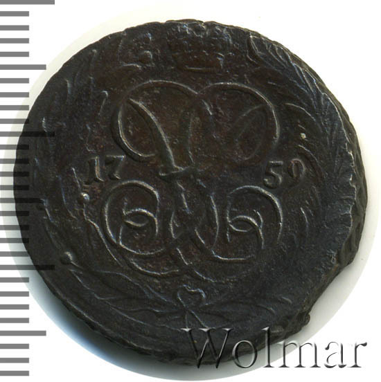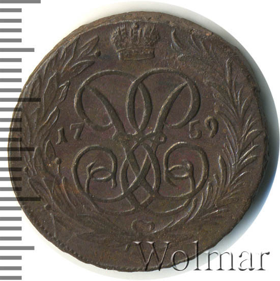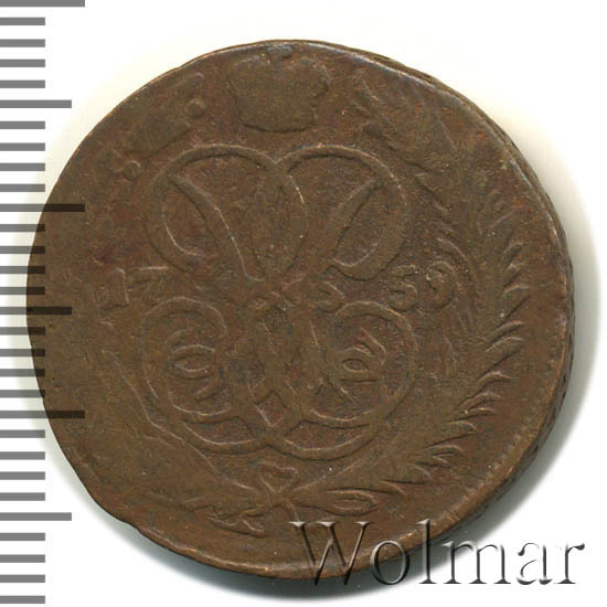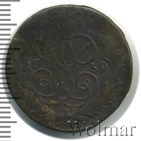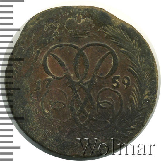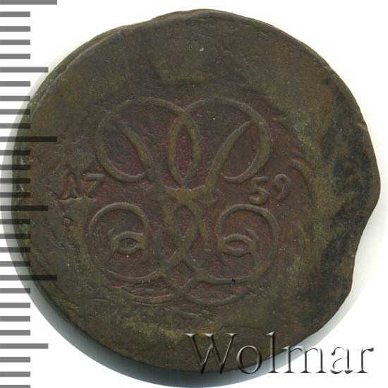 Аверс монеты 1 копейка 1759 года