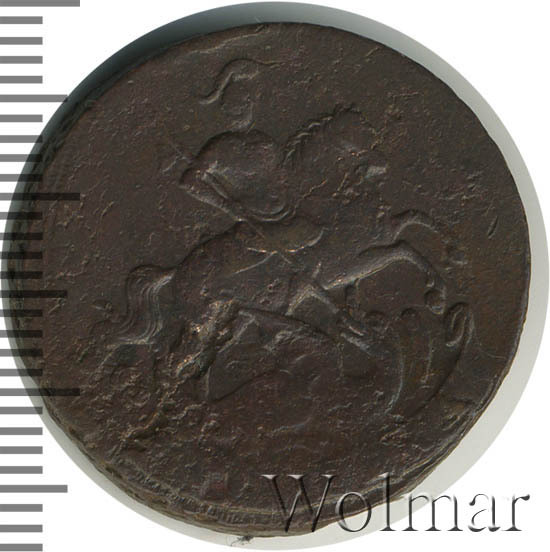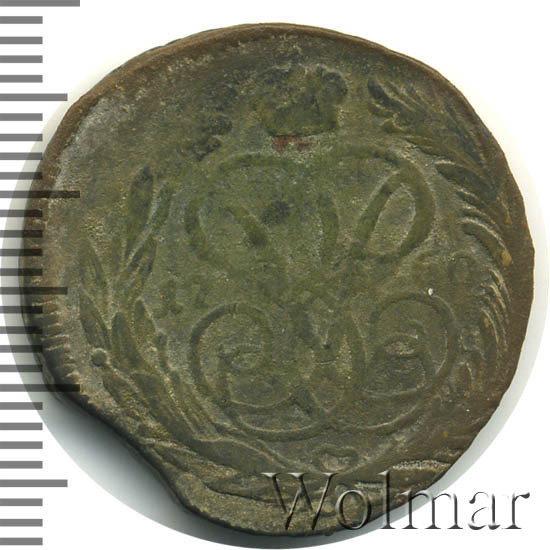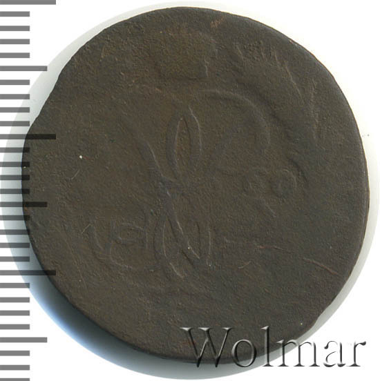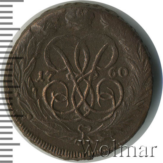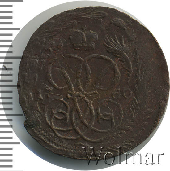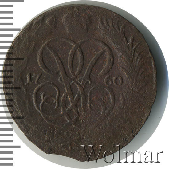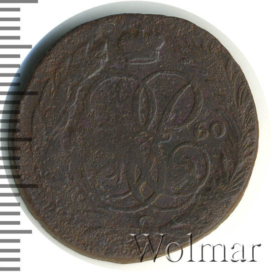 В центре изображён вензель императрицы Елизаветы I (Петровны). Над вензелем - императорская корона. По обеим сторонам от вензеля цифры даты выпуска монеты: слева - «17», справа - «60» (1760 год). Вокруг центрального изображения, вдоль канта, изображён венок из лавровой и пальмовой ветвей, которые, в нижней части, перевязаны лентой на узел бантом.