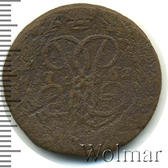 В центре изображён вензель императрицы Елизаветы I (Петровны). Над вензелем - императорская корона. По обеим сторонам от вензеля цифры даты выпуска монеты: слева - «17», справа - «61» (1761 год). Вокруг центрального изображения, вдоль канта, изображён венок из лавровой и пальмовой ветвей, которые, в нижней части, перевязаны лентой на узел бантом.
