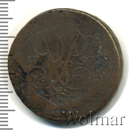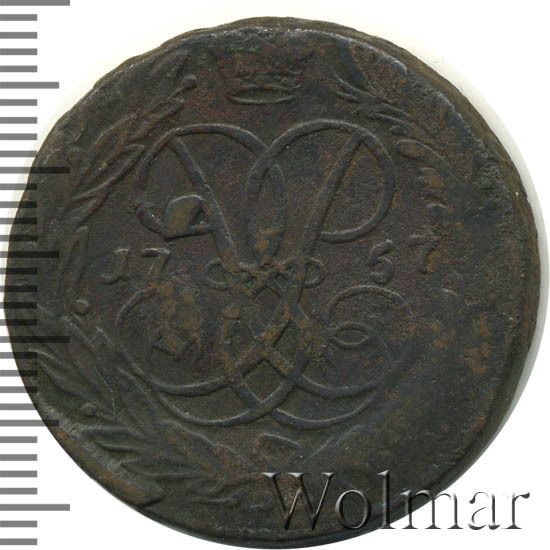 '2 копейки 1757 номинал над гербом'