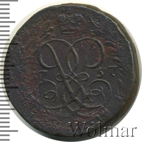2 копейки 1761 номинал над гербом