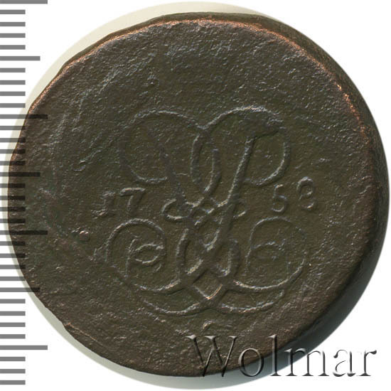 - Медные монеты Елизаветы: копейка, 2 и 5 копеек Елизаветы Петровны, денга, полушка