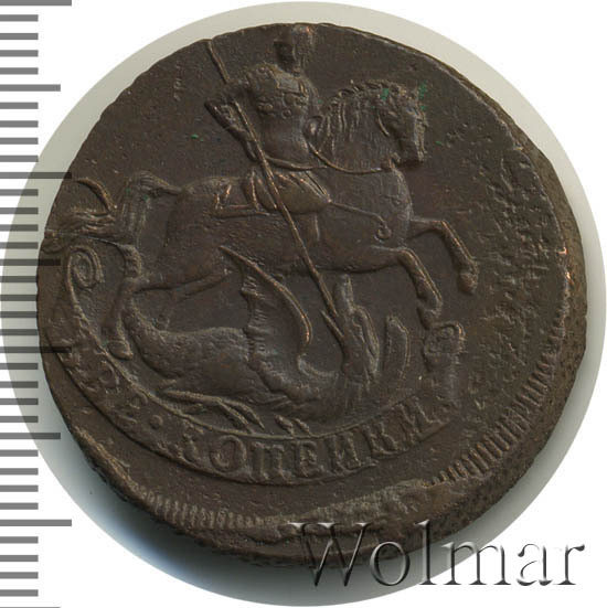 2 копейки 1760 номинал под гербом, екатеринбургский