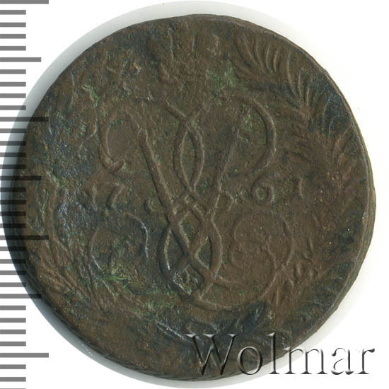 '2 копейки 1761 номинал под гербом'