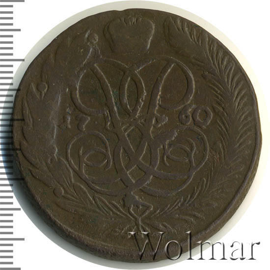 Цена на монету 5 копеек 1760 года без букв на сегодня, 8 декабря 2025 года