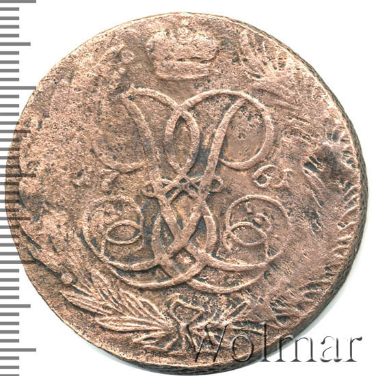 Реверс монеты 5 копеек 1761 года без букв