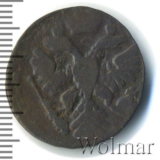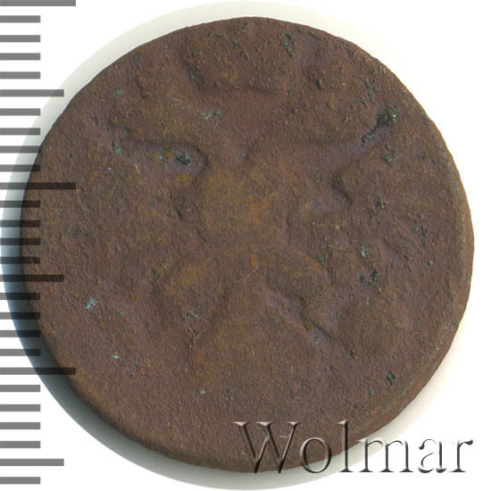 Реверс монеты денга 1743 года 7 перьев