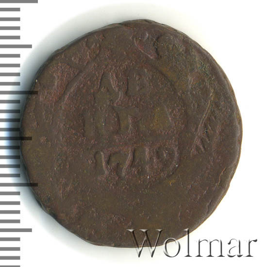 Реверс монеты денга 1749 года