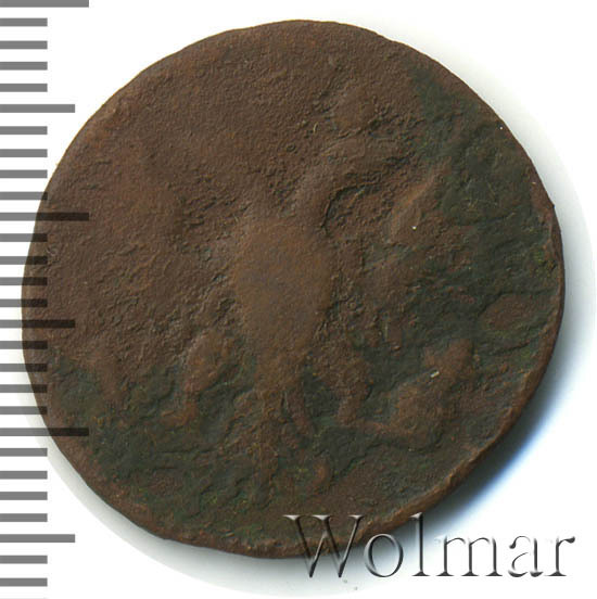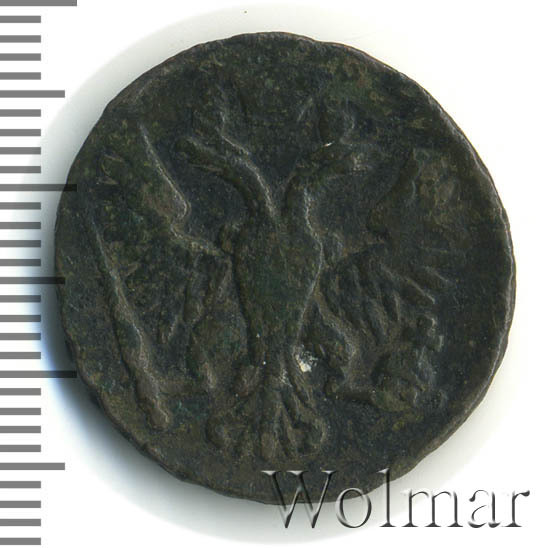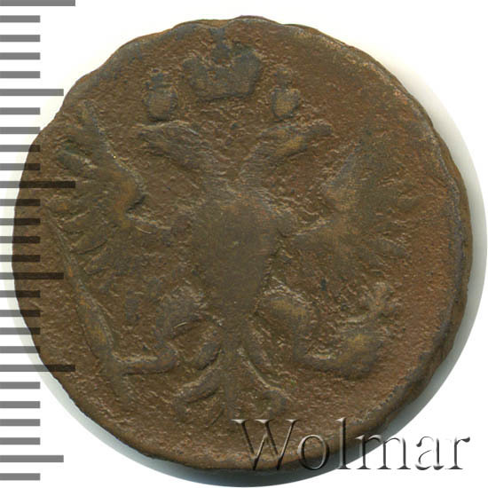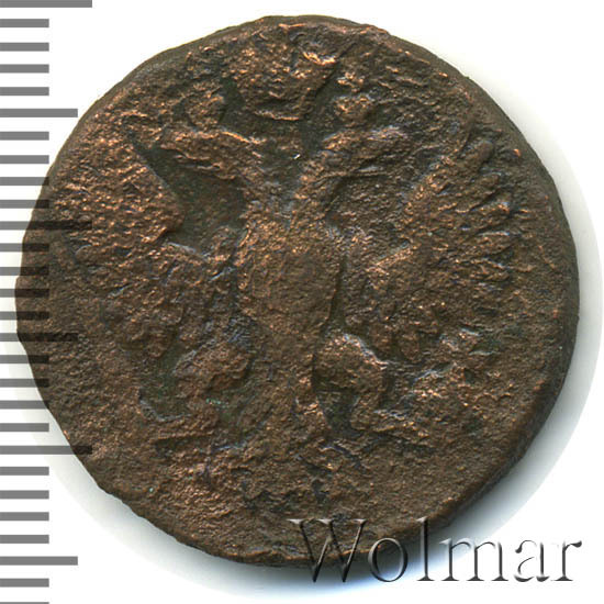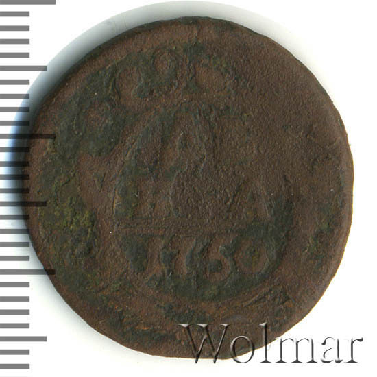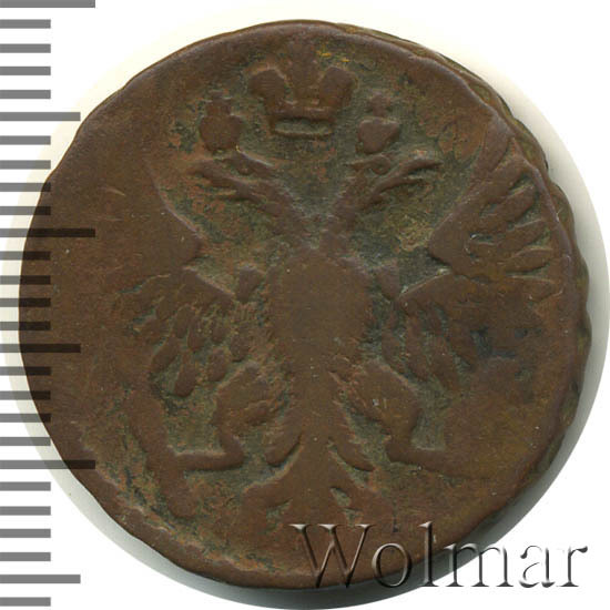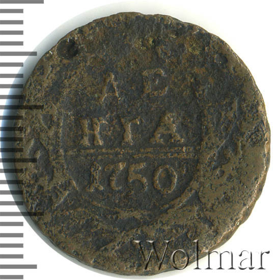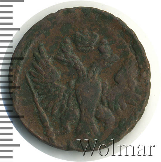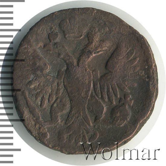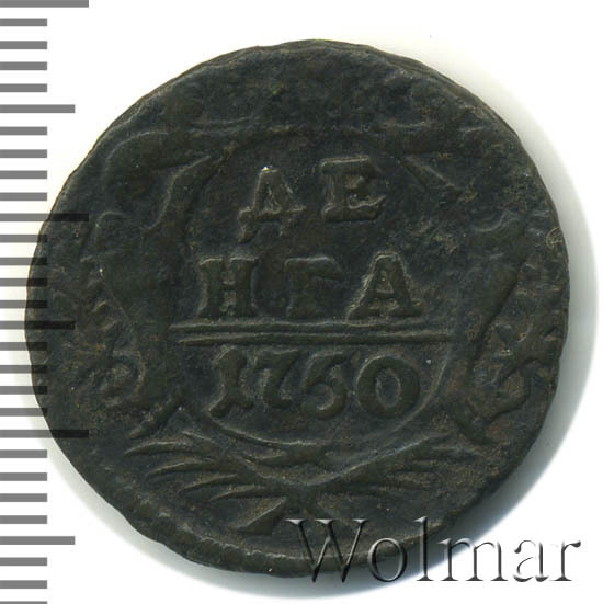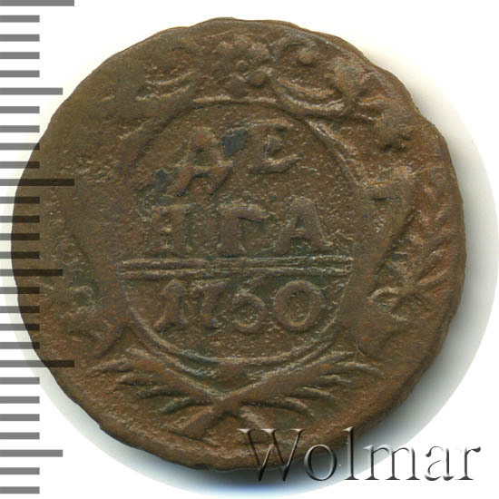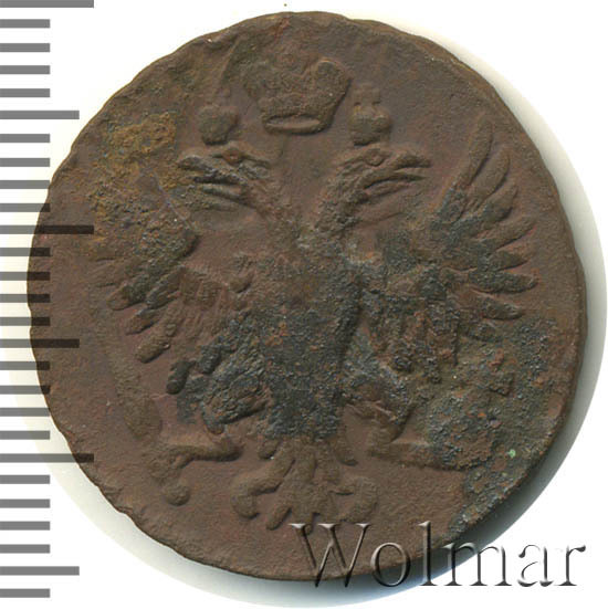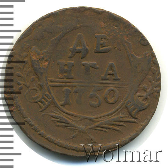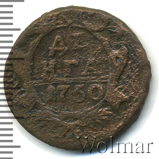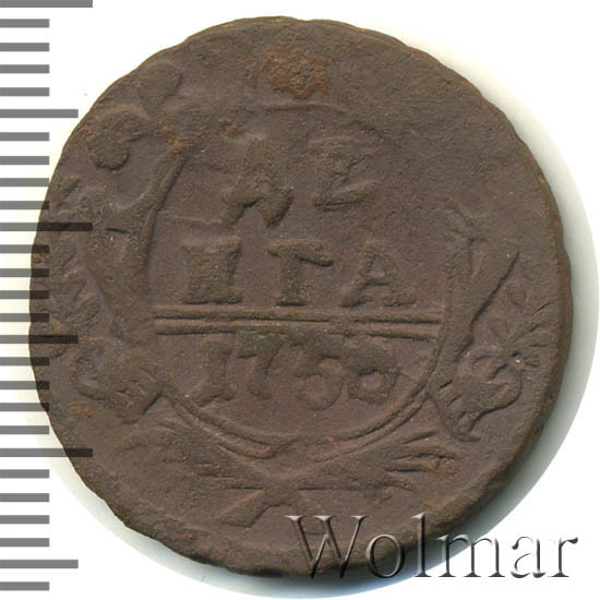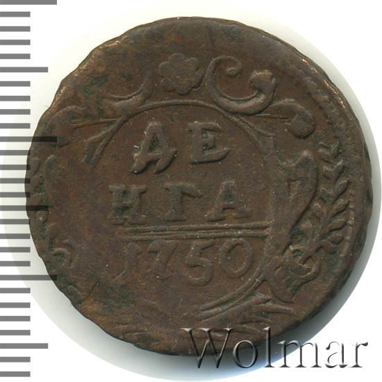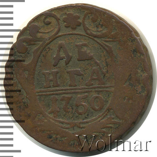 Медная монета, номиналом в одну денгу, относится к царствованию императрицы Елизаветы Петровны Романовой , дочери Петра Первого. Елизавета взошла на российский престол, в результате дворцового переворота (декабрь 1741), в апреле 1742 года.
