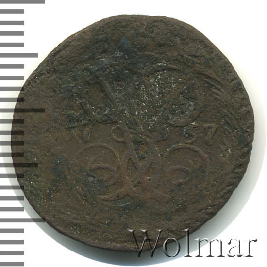 Реверс монеты денга 1757 года