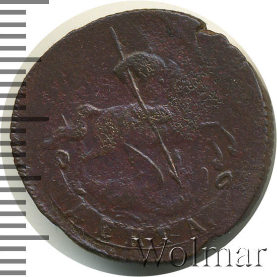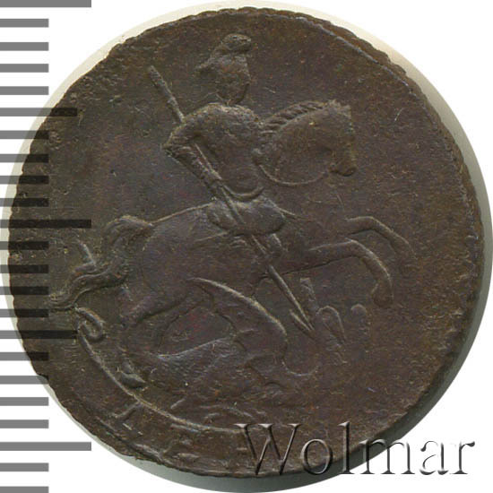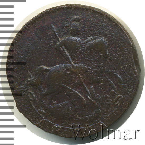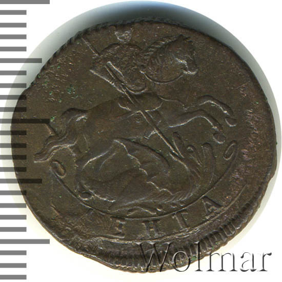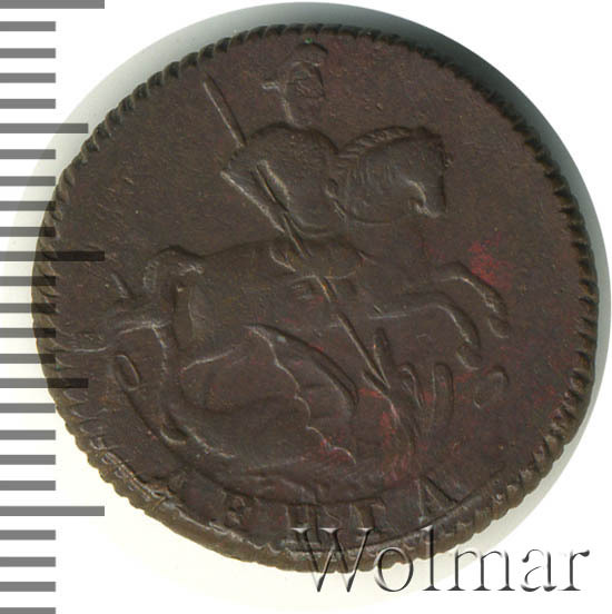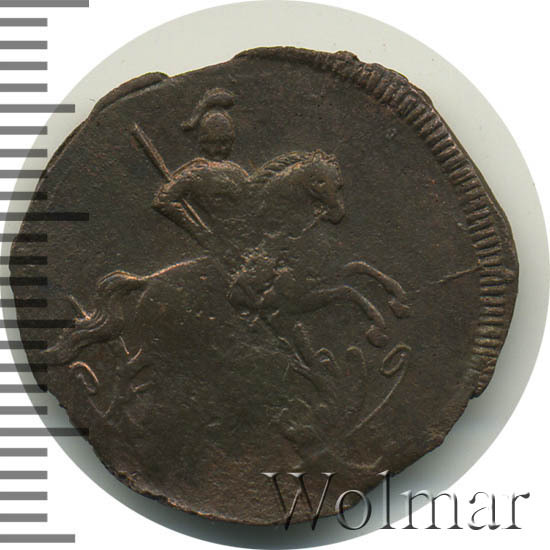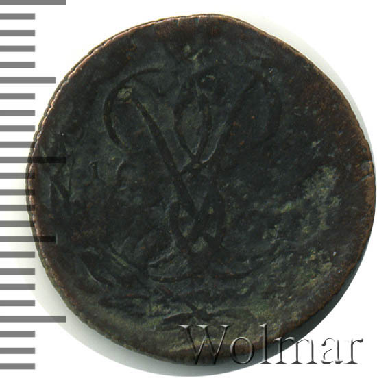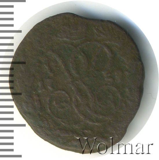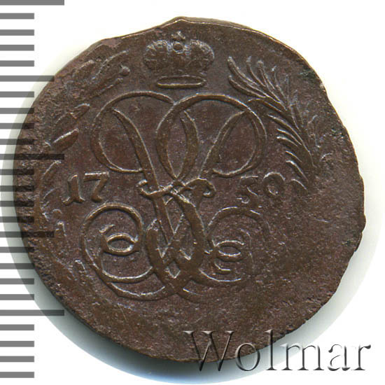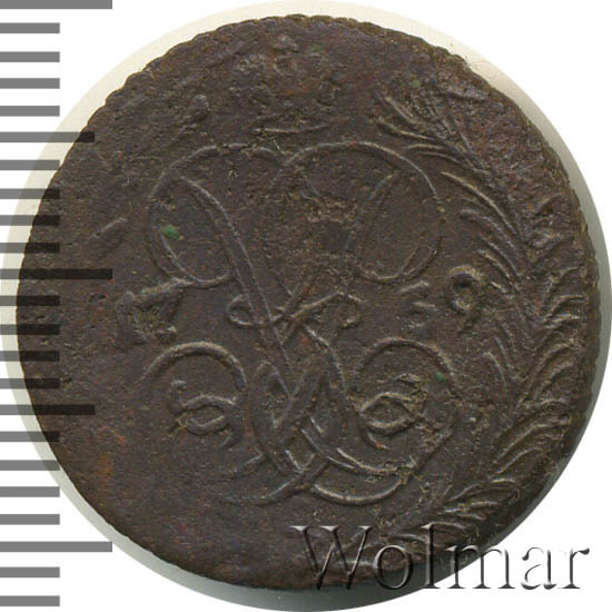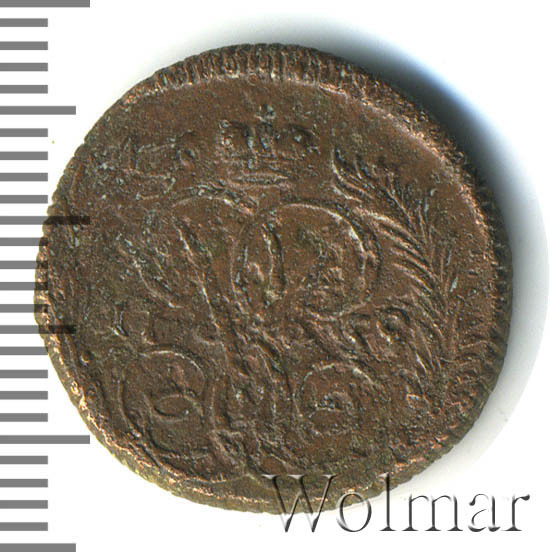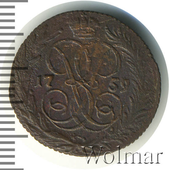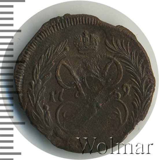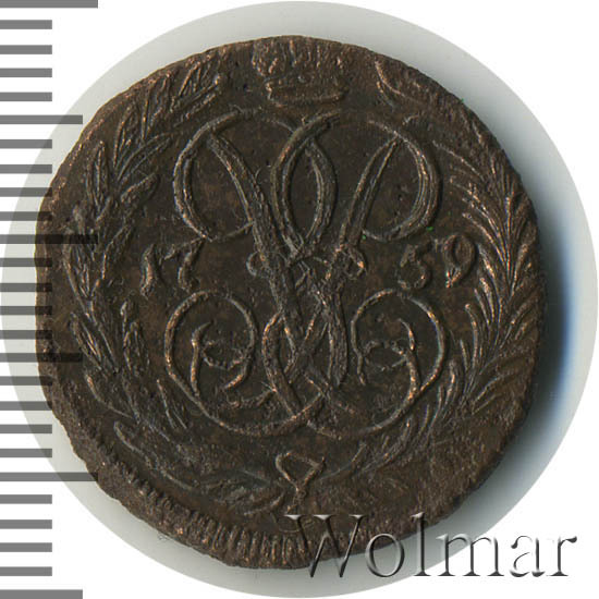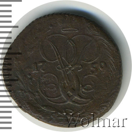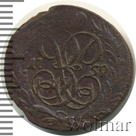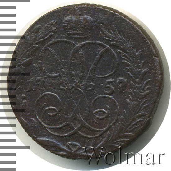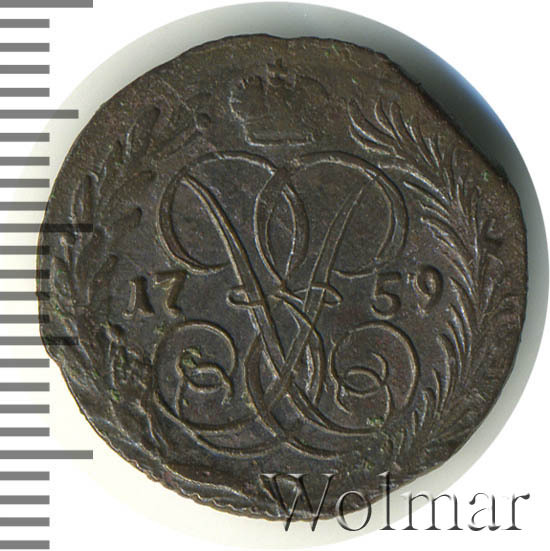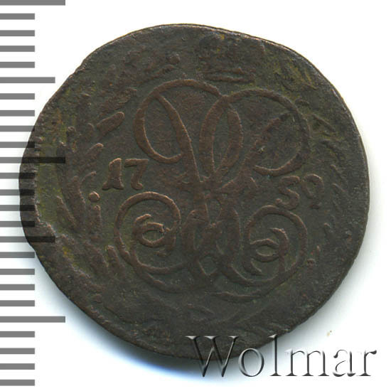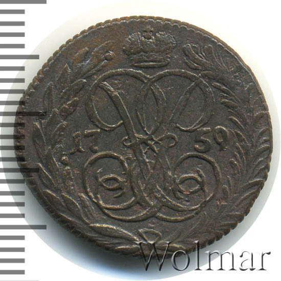 В центре изображён вензель императрицы Елизаветы I (Петровны). Над вензелем - императорская корона. По обеим сторонам от вензеля цифры даты выпуска монеты: слева - «17», справа - «59» (1759 год). Вокруг центрального изображения, вдоль канта, изображён венок из лавровой и пальмовой ветвей, которые, в нижней части, перевязаны лентой на узел бантом.