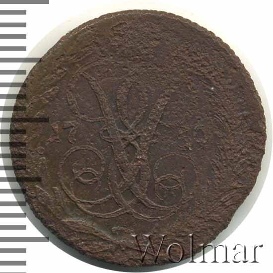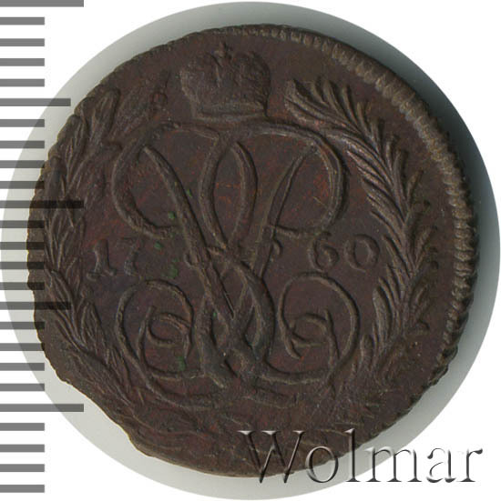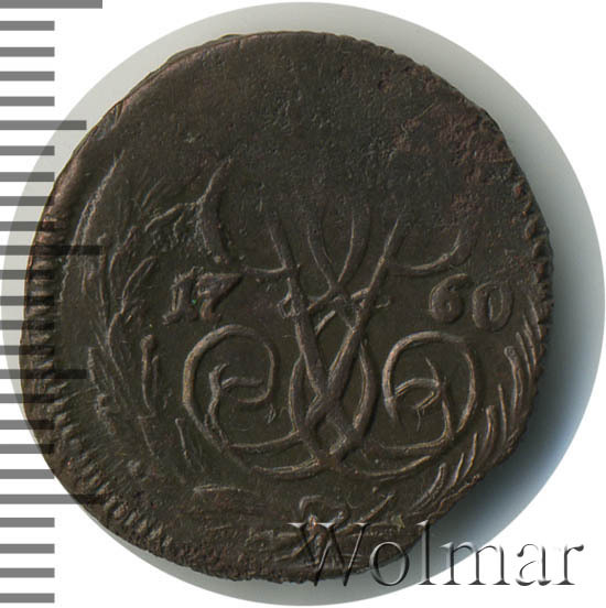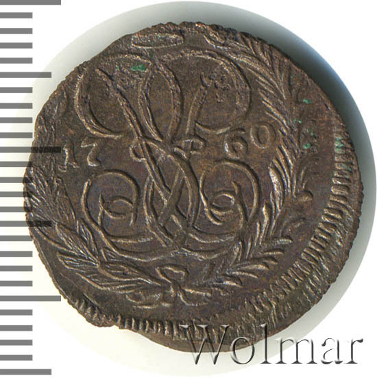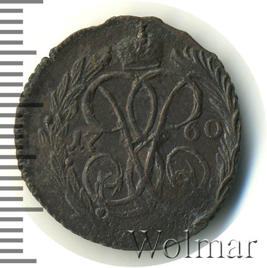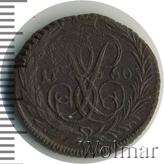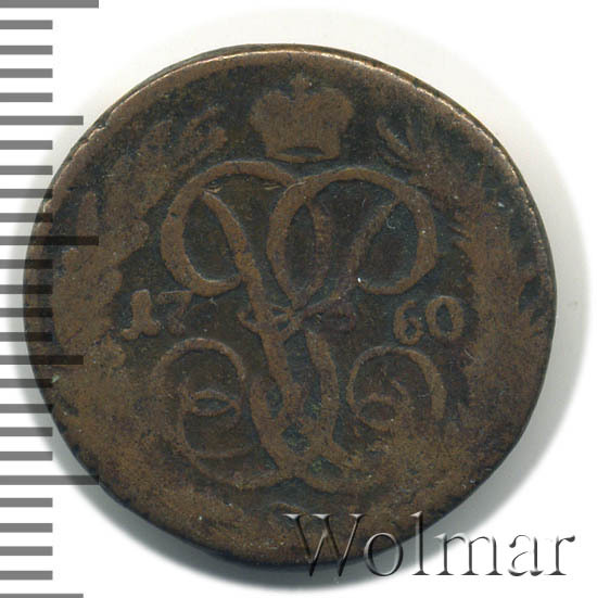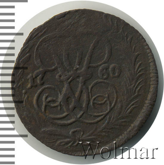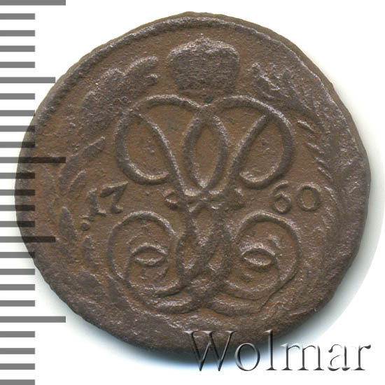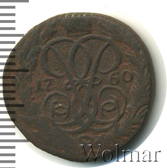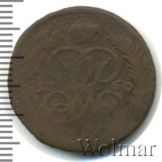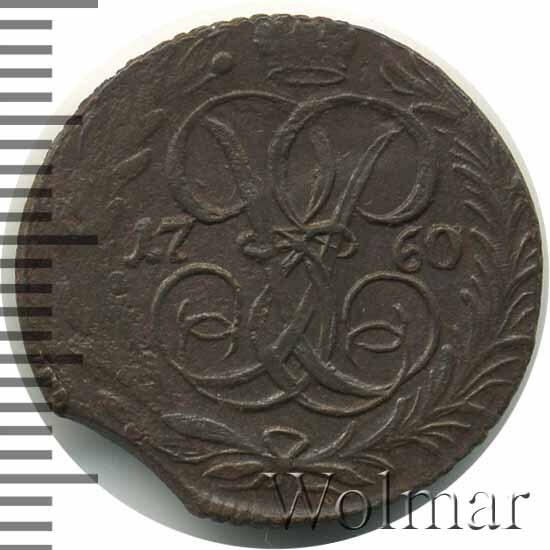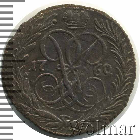 В центре изображён вензель императрицы Елизаветы I (Петровны). Над вензелем - императорская корона. По обеим сторонам от вензеля цифры даты выпуска монеты: слева - «17», справа - «60» (1760 год). Вокруг центрального изображения, вдоль канта, изображён венок из лавровой и пальмовой ветвей, которые, в нижней части, перевязаны лентой на узел бантом.