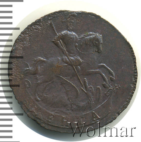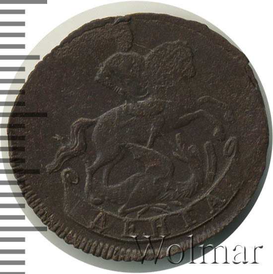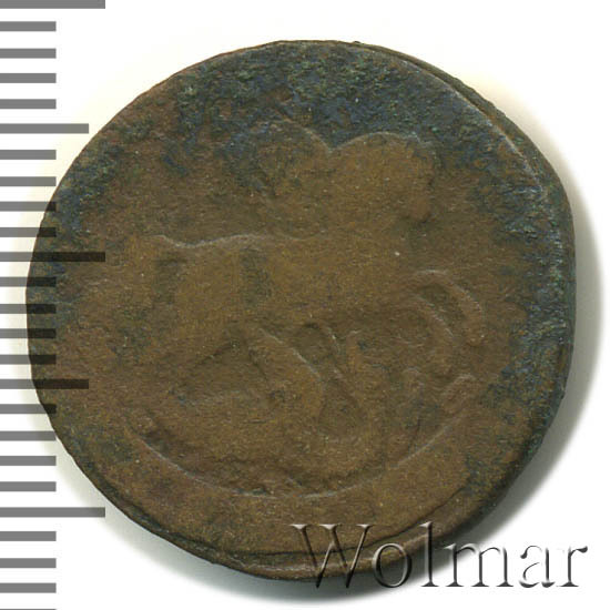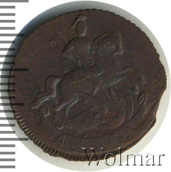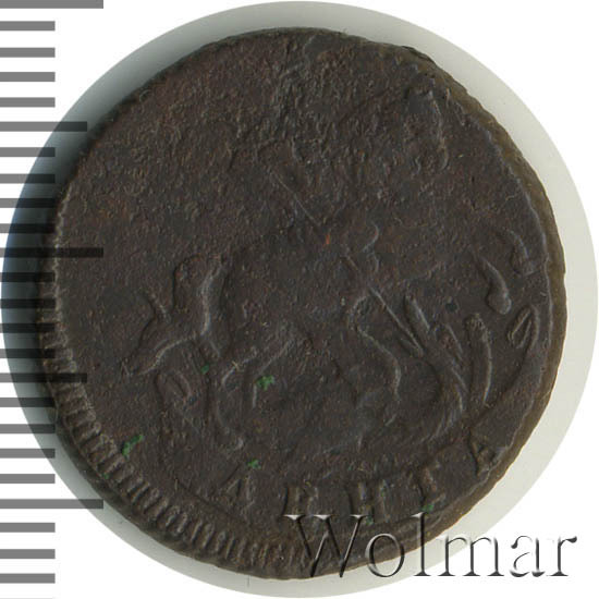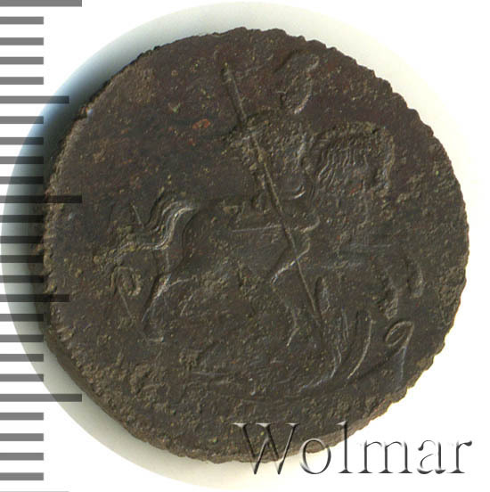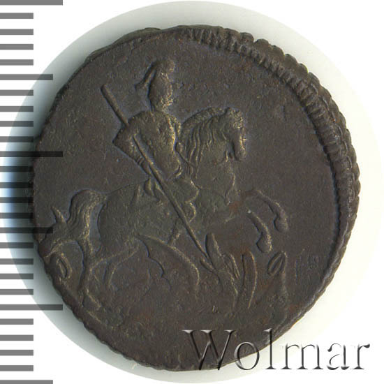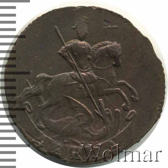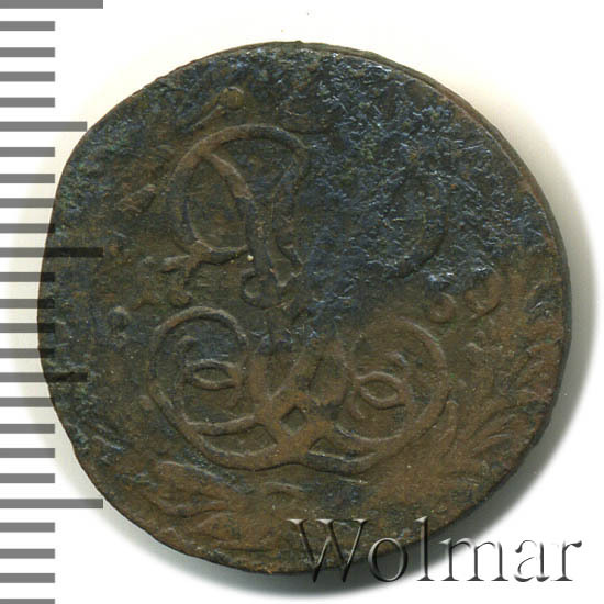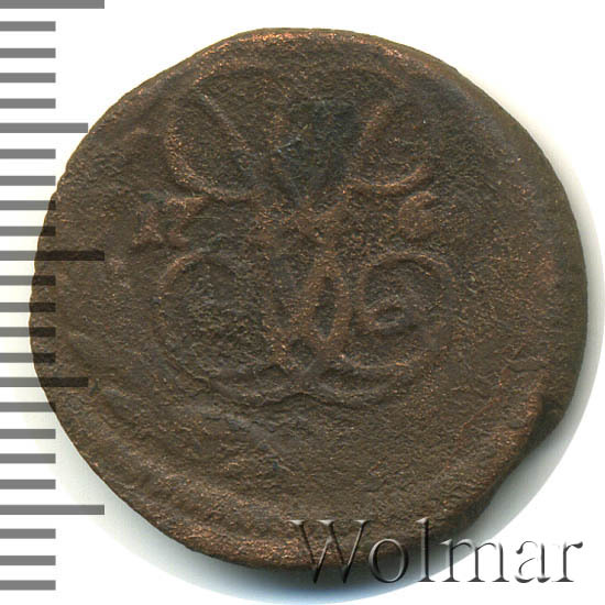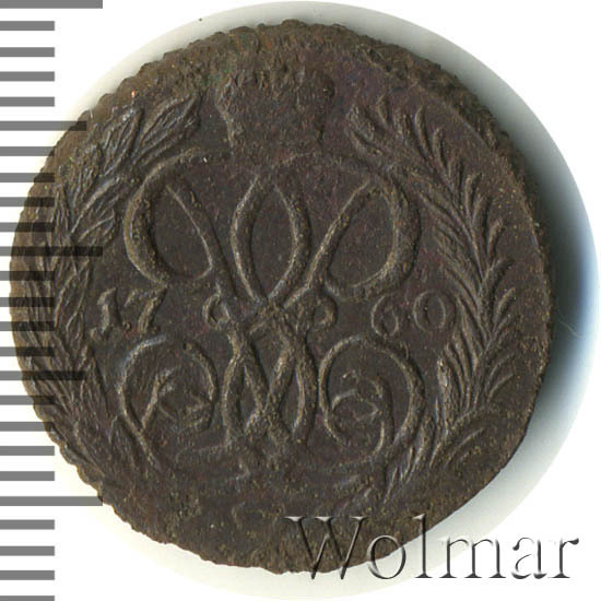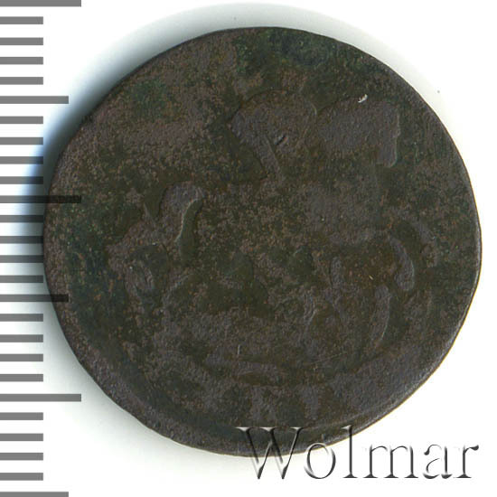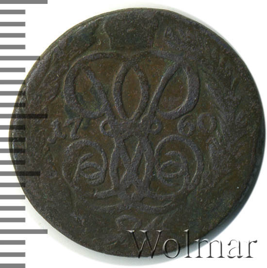 В центре изображён вензель императрицы Елизаветы I (Петровны). Над вензелем - императорская корона. По обеим сторонам от вензеля цифры даты выпуска монеты: слева - «17», справа - «60» (1760 год). Вокруг центрального изображения, вдоль канта, изображён венок из лавровой и пальмовой ветвей, которые, в нижней части, перевязаны лентой на узел бантом.