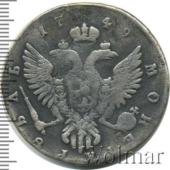 Аверс монеты 1 рубль 1749 года ММД