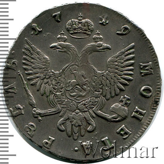 Аверс монеты 1 рубль 1749 года СПБ