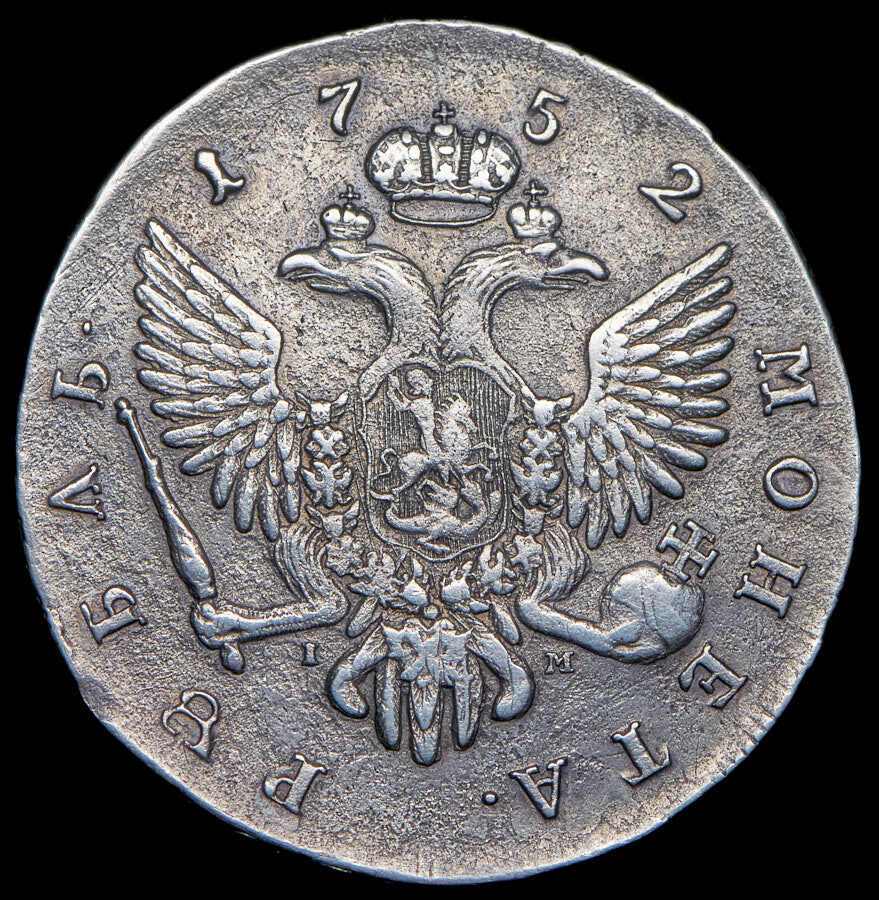 Реверс монеты 1 рубль 1752 года СПБ-IM