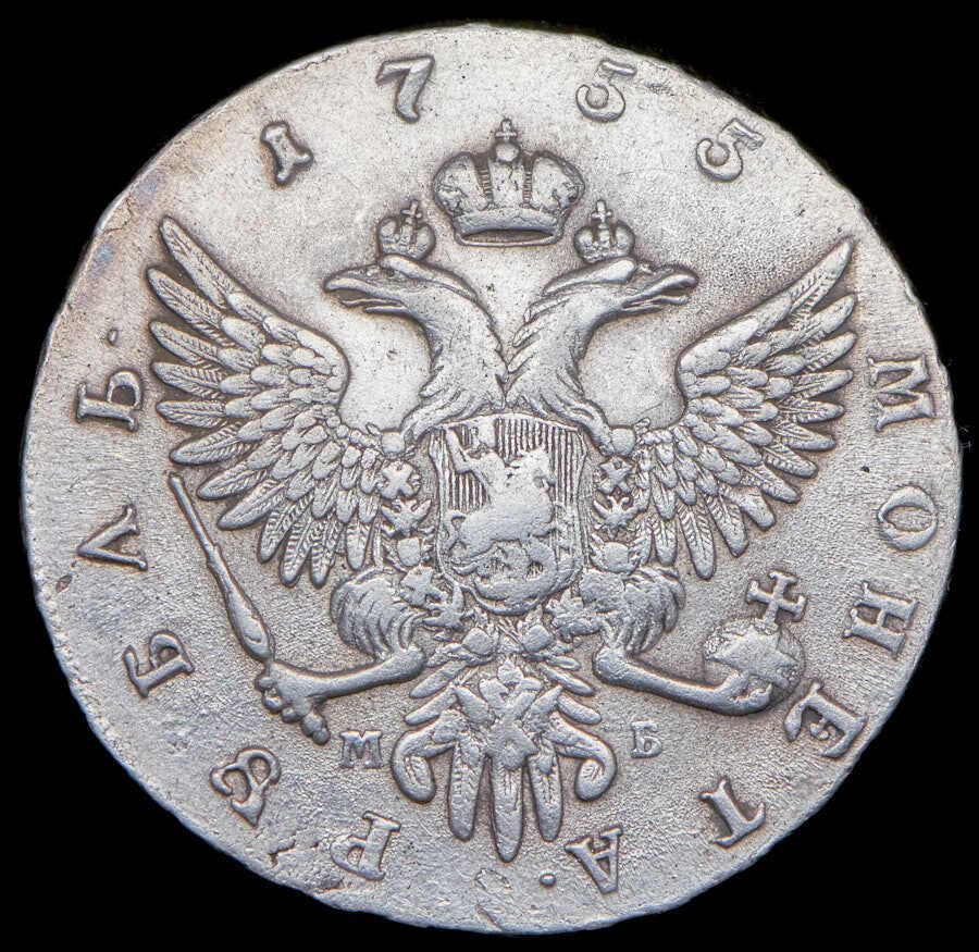 Аверс монеты 1 рубль 1755 года ММД-МБ