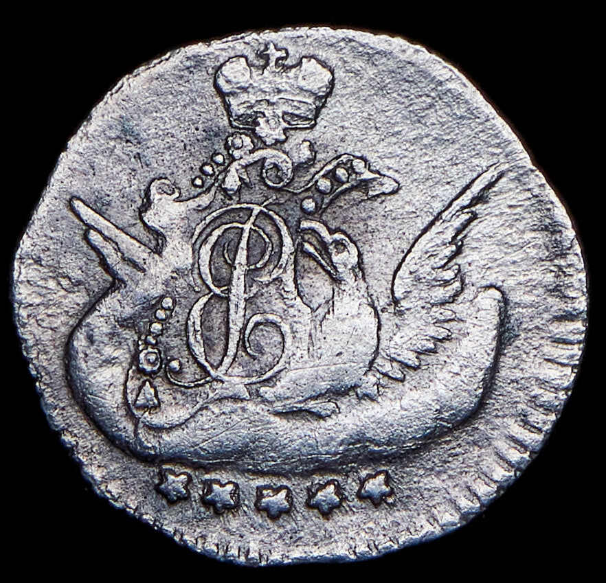 В центре изображён орёл с расправленными крыльями, сидящий на облаке и держащий в своём клюве картуш с вензелем императрицы Елизаветы I (Петровны). Изображение увенчано императорской короной. Под центральным изображением пять выпуклых счётных элементов, выполненных в виде звёзд. Звёзды обозначают (дублируют) номинал монеты.
