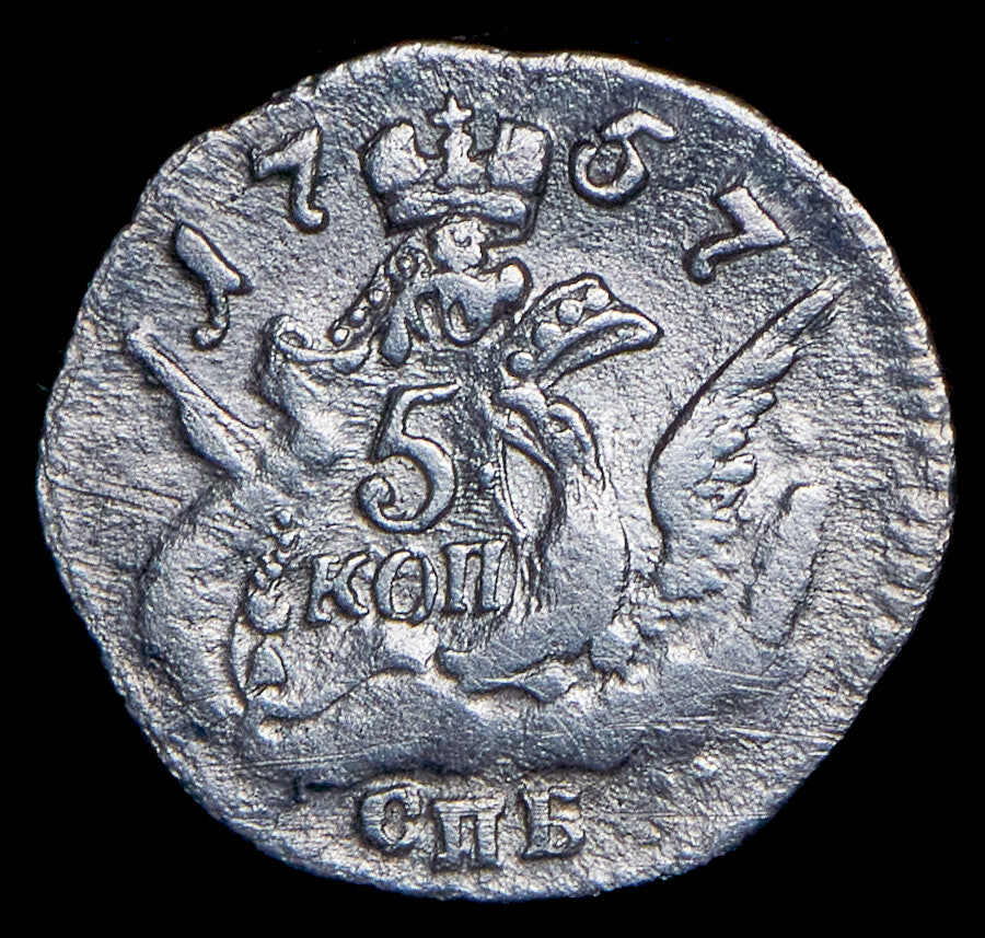 Цена на монету 5 копеек 1757 года СПБ на сегодня, 7 декабря 2025 года