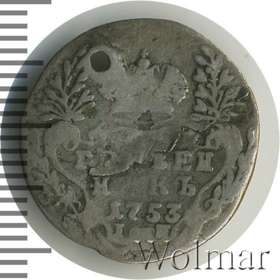 Цена на монету гривенник 1753 года IП на сегодня, 21 января 2026 года