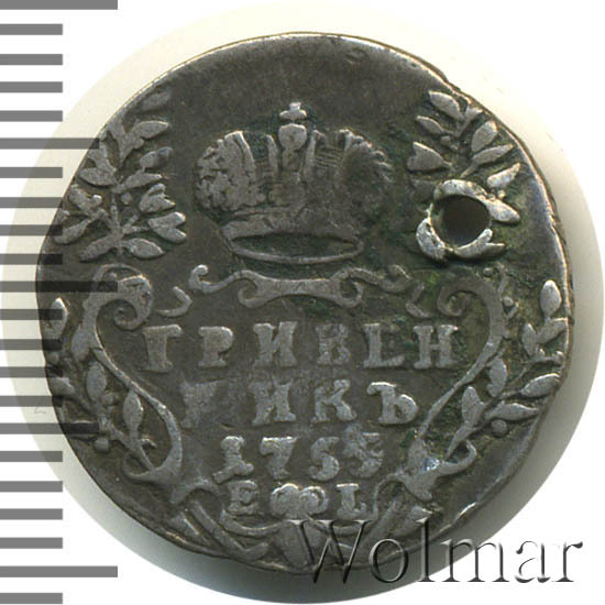 Цена на монету гривенник 1755 года ЕI на сегодня, 19 октября 2025 года