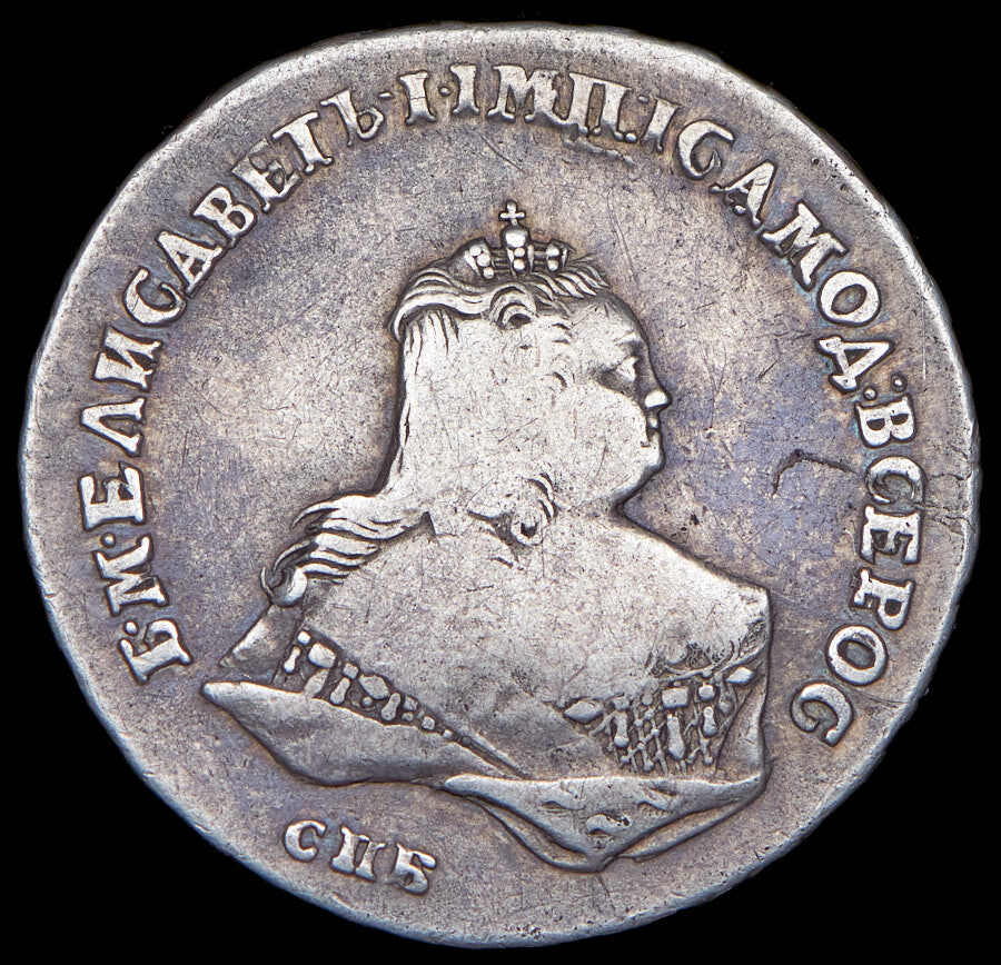 полтина 1743-1754 СПБ "Погрудный портрет", Санкт-Петербургский монетный двор
