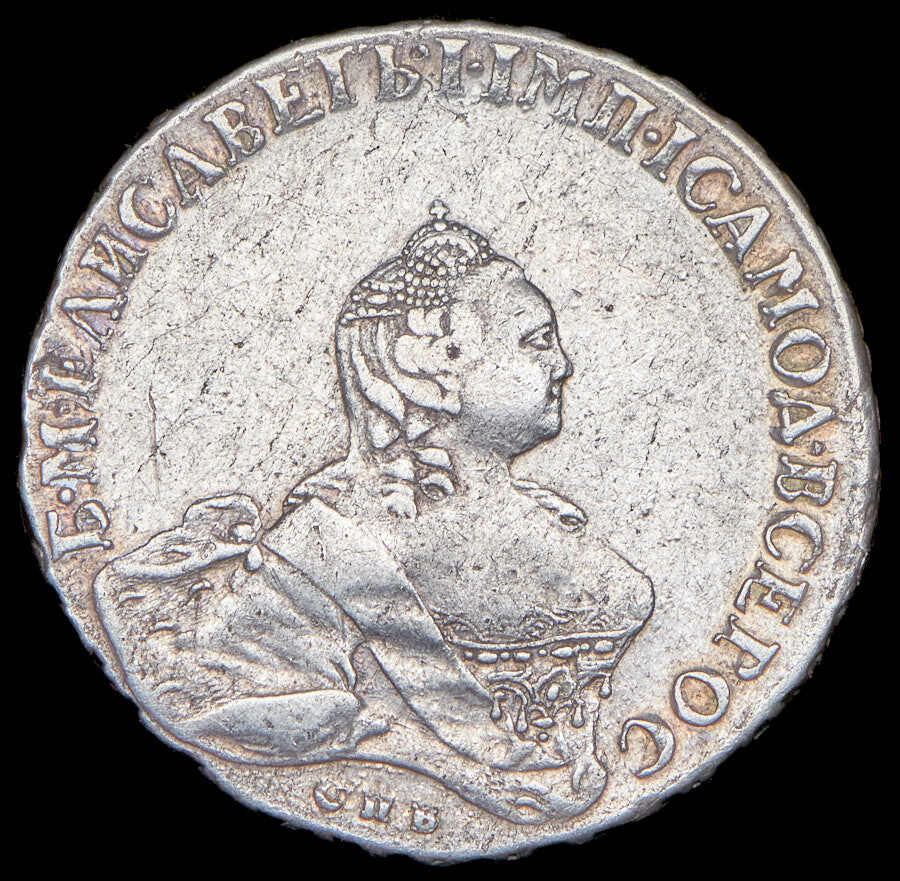 Аверс монеты полтина 1758 года СПБ-BS-НК