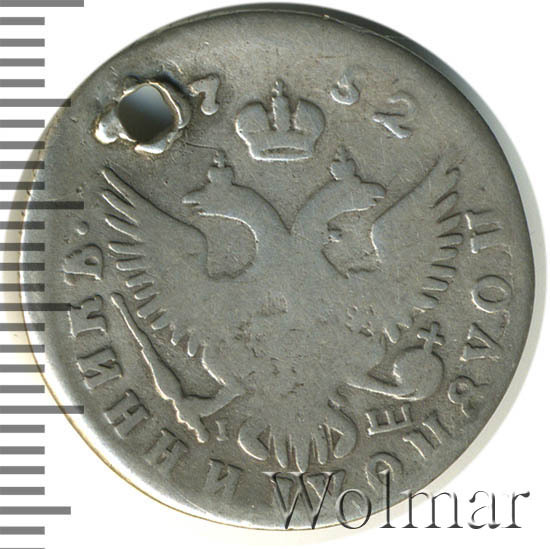 Аверс монеты полуполтинник 1752 года ММД-Е