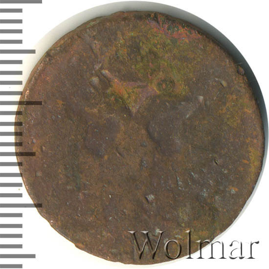 В центре изображён картуш украшенный виньетками, по обеим сторонам две лавровые ветви, сверху - цветочная розетка. Под картушем - две перекрещенные пальмовые ветви. В картуше надпись в три строки, в которой указан номинал и год выпуска: «ДЕ»│«НГА»│«1741». Между номиналом и годом выпуска две прямые черты.