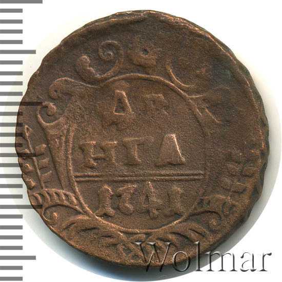 Реверс монеты денга 1741 года