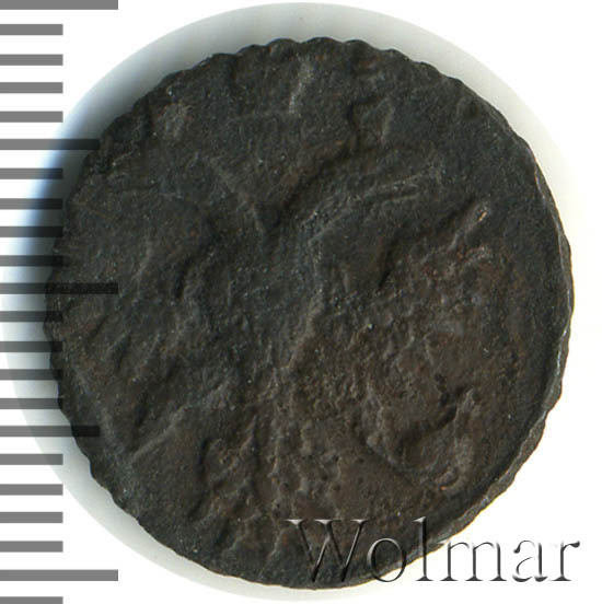 В центре изображён картуш украшенный виньетками, по обеим сторонам две лавровые ветви, сверху - цветочная розетка. Под картушем - две перекрещенные пальмовые ветви. В картуше надпись в три строки, в которой указан номинал и год выпуска: «ПОЛУ»│«ШКА»│«1741».