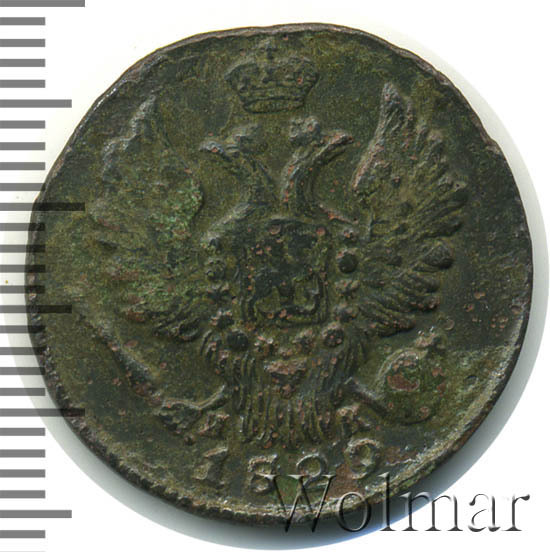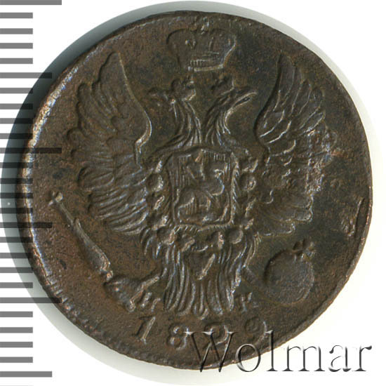 Аверс монеты 1 копейка 1829 года ЕМ-ИК