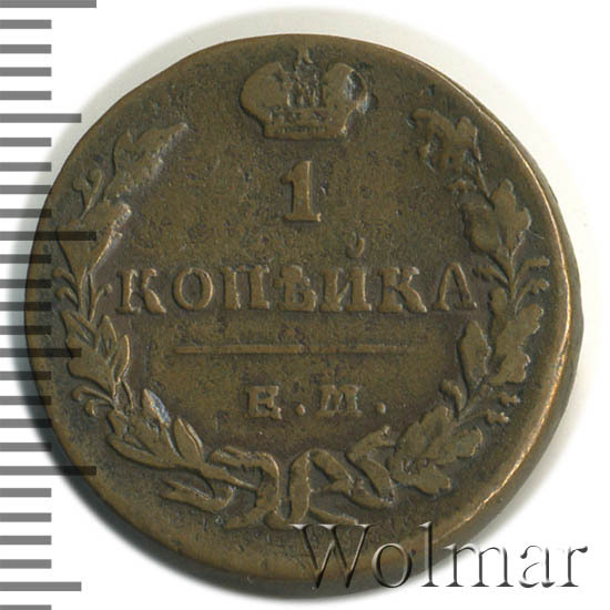 Реверс монеты 1 копейка 1830 года ЕМ-ИК