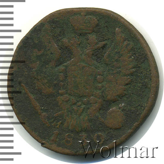 Аверс монеты 1 копейка 1830 года ЕМ-ИК