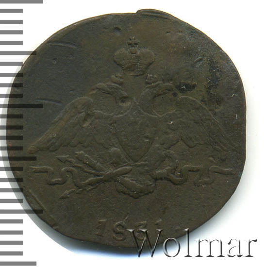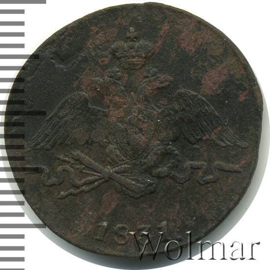 Реверс монеты 1 копейка 1831 года СМ