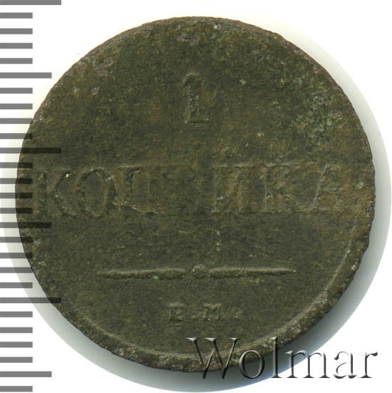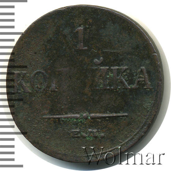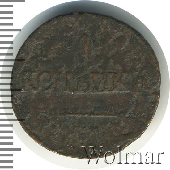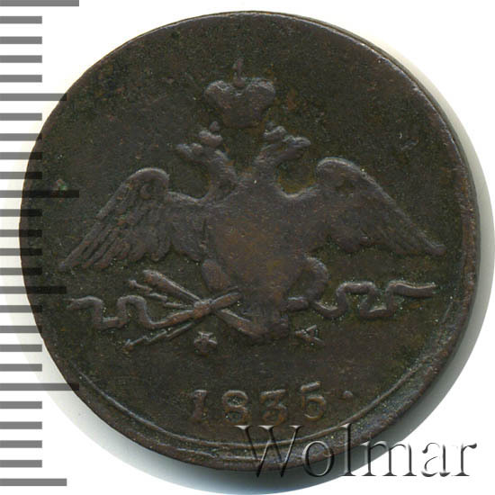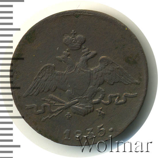 Реверс монеты 1 копейка 1835 года ЕМ-ФХ