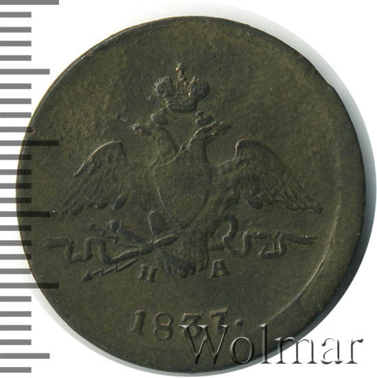 Реверс монеты 1 копейка 1837 года ЕМ-НА