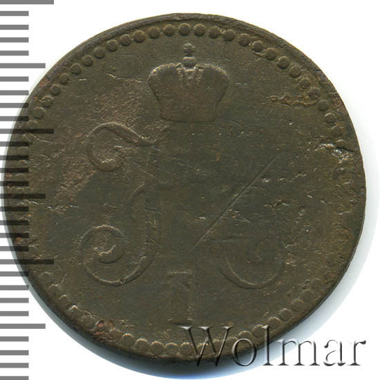 В центре вензель Николая I. Над ним Корона Российской империи. По окружности канта имеются рельефные элементы, выполненные в виде точек.